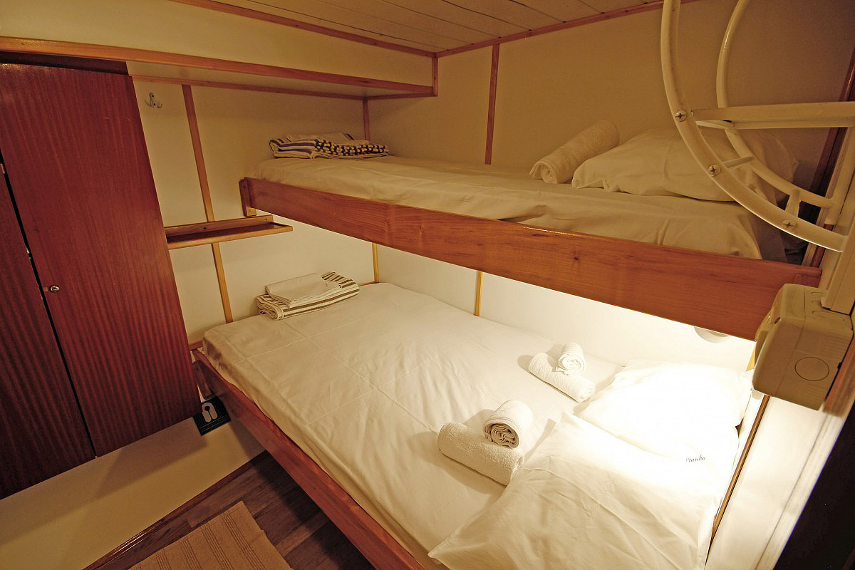 Za dodatkową opłatą można zarezerwować kabinę na pokładzie lub kabinę Premium (bez łóżek piętrowych), wyłącznie po wcześniejszym zgłoszeniu chęci skorzystania z niej. Woda z prysznica spływa do odpływu podłogowego. Nie jest to kabina prysznicowa i nie jest oddzielona zasłoną.