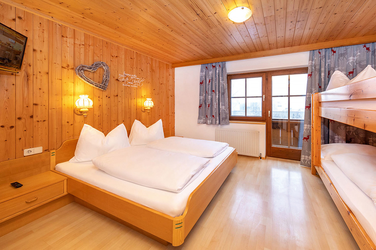 20 m² - pokój z łóżkiem małżeńskim i łóżkiem piętrowym dla maksymalnie 2 dzieci do nieukończonych 15 lat, łazienka, balkon