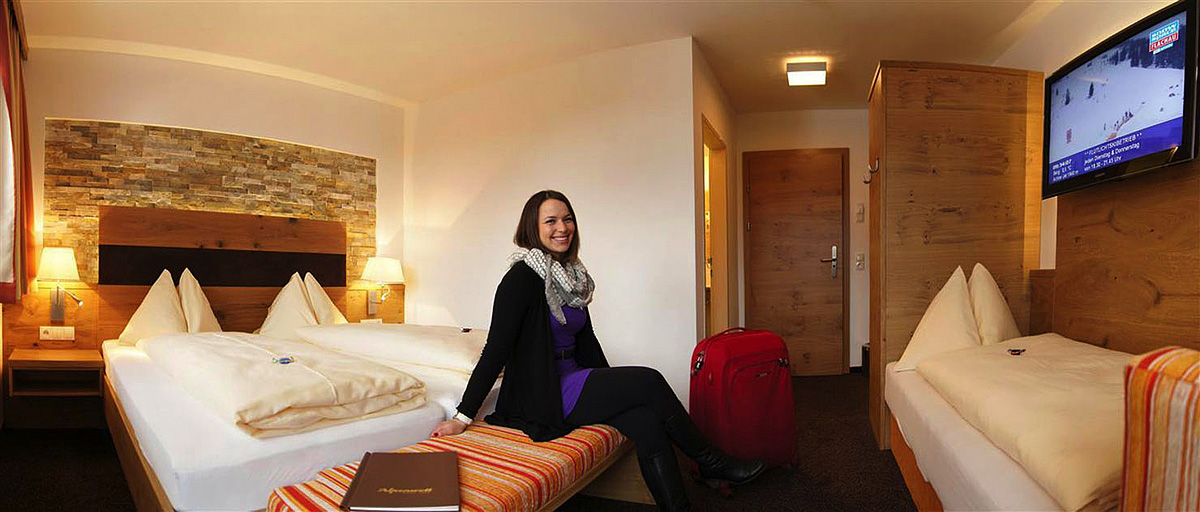 ok. 34 m² - pokój z łóżkiem małżeńskim, możliwość trzeciego i czwartego łóżka dla 2 dzieci do 15 lat, łazienka z prysznicem, balkon; min. obłożenie pokoju to 2 dorosłych i 2 dzieci