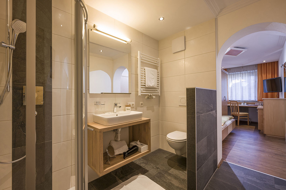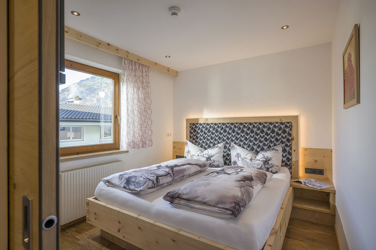 Hochzillertal 2+2 - pokój z łożkiem małżeńskim i ewentualnie rozkładaną kanapą lub dostawkami dla 2 osób do nieukończonych 19 lat, część pokoi posiada oddzielne sypialnie, łazienkę z prysznicem lub wanną, balkon lub taras