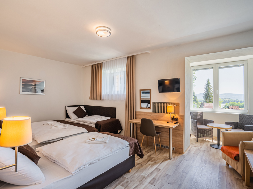 Lipno (z własną hotelową plażą) – 420 m, Černá v Pošumaví – 4 km, Dolní Vltavice, centrum – 5,2 km, Aquaworld Lipno – 22 km, SlideLand Lipno – 22 km, Ścieżka w koronach drzew – 23 km, Český Krumlov – 25 km, zamek Rožmberk – 32,5 km, Plešné jezero – 33 km, wieża widokowa Moldaublick (AT) – 43 km