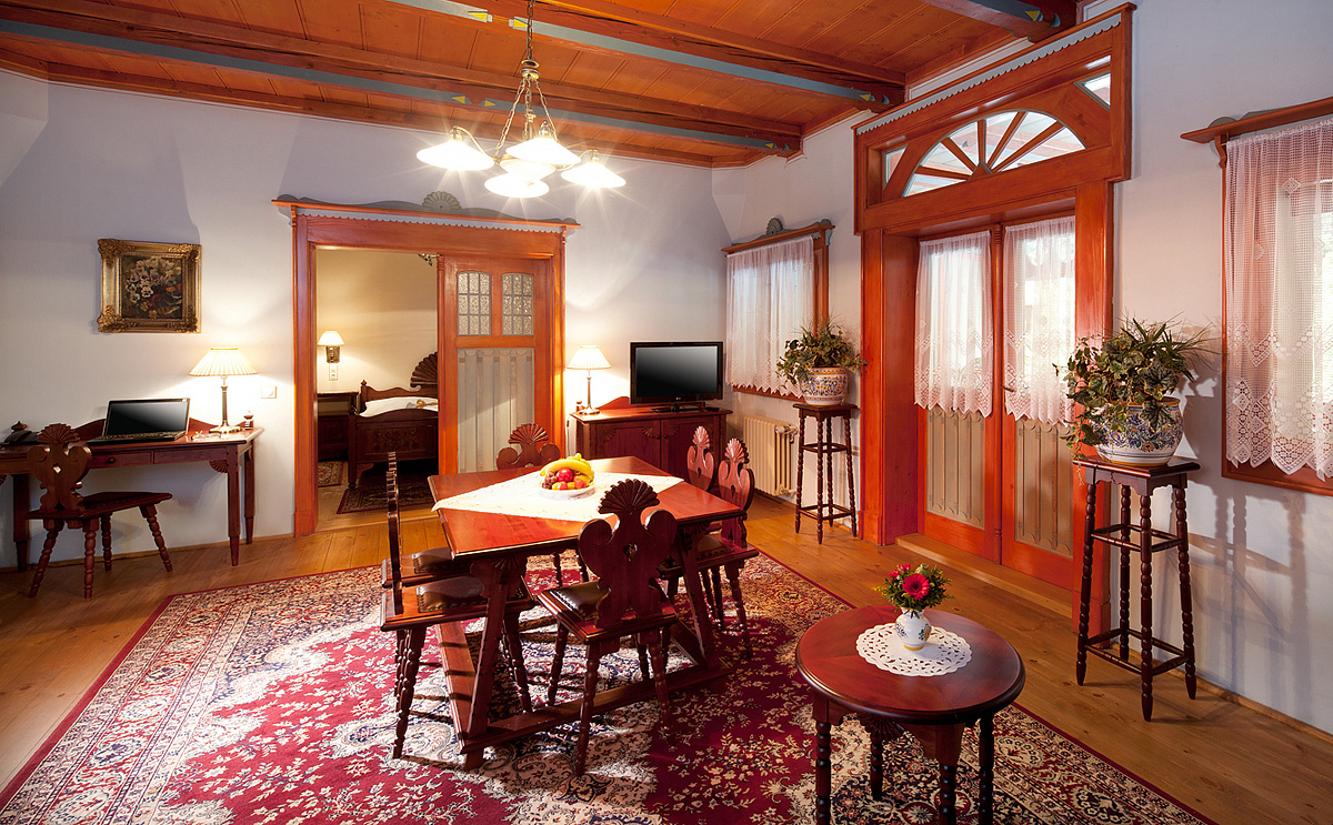 uzdrowiskowy hotel w stylu ludowej secesji w samym centrum Luhačovic bezpośrednio przy kolumnadzie