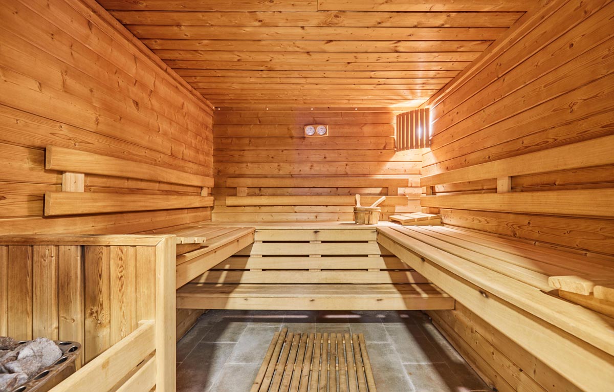 częściowo kryty i częściowo zewnętrzny podgrzewany basen 60 m² z leżakami, jacuzzi*, sauna*, sauna parowa*, kącik relaksacyjny, prysznic wielofunkcyjny, mniejsza siłownia; w pobliżu pole golfowe*