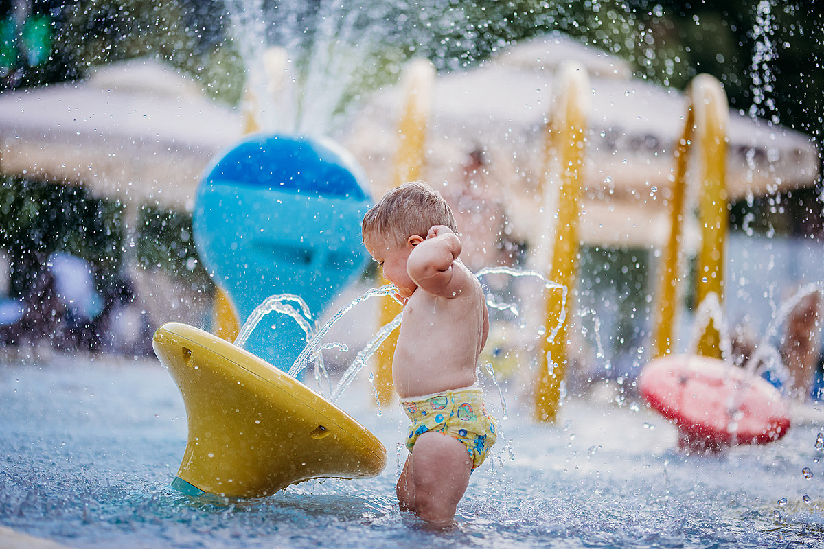 basen z falami, basen z wodospadem (31 - 34°), dziecięcy wodny świat, ścieżka Kneippa, zjeżdżalnia