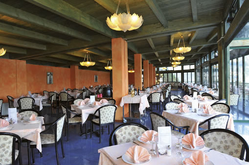 recepcja, bar, 2x restauracja, sala wspólna z kominkiem i muzyką na żywo (2x w tygodniu) lub muzyką z odtwarzacza, pizzeroe / bar z widokiem na jezioro, częścią pizzeri jest wewnętrzny ogrzewany basen, ogród, winda, przechowalnia rowerów, minimarket, wydzielony parking, domowe zwierzęta nie są akceptowane