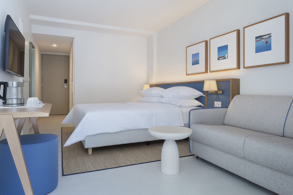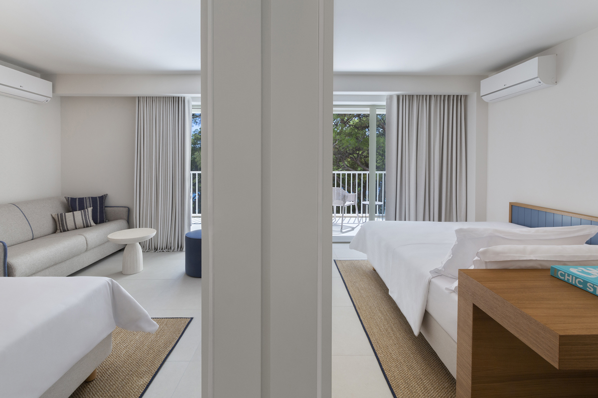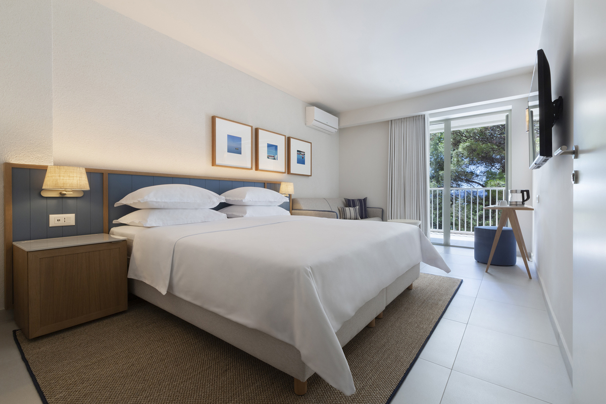 20 m² - pokój z łóżkiem małżeńskim, rozkładana sofa dla 1 osoby, łazienka z prysznicem, balkon od strony morza
