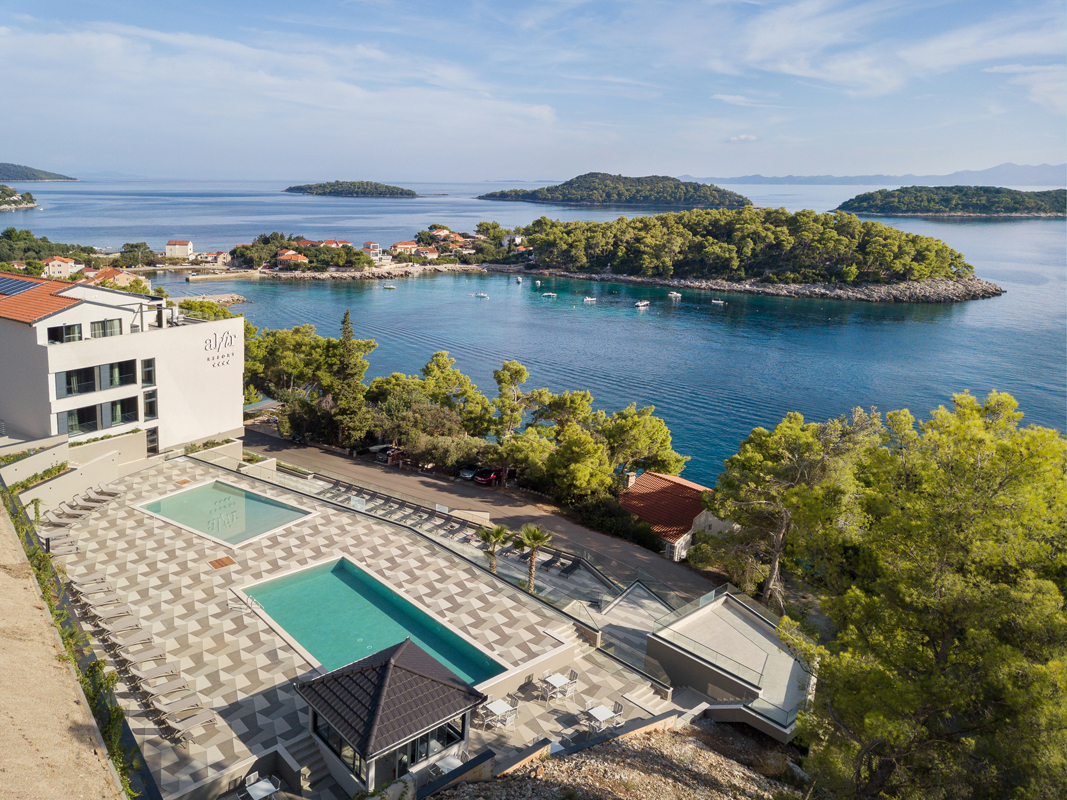Nowoczesny hotel ukryty w spokojnej zatoce kurortu Přižba na popularnej wyspie Korčula.