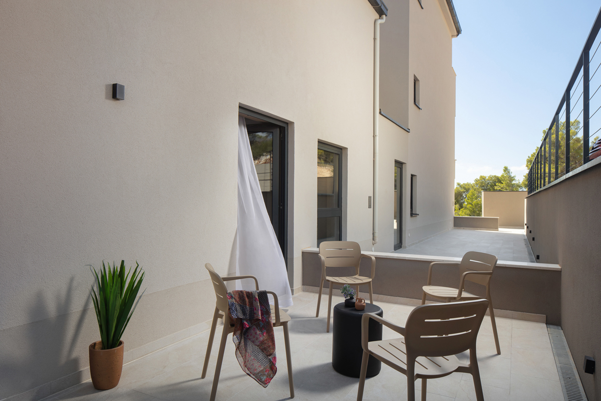 32 m² - pokój z łóżkiem małżeńskim, pokój z rozkładaną kanapą dla maksymalnie 2 osób (160 x 200), łazienka z prysznicem, balkon z widokiem na morze