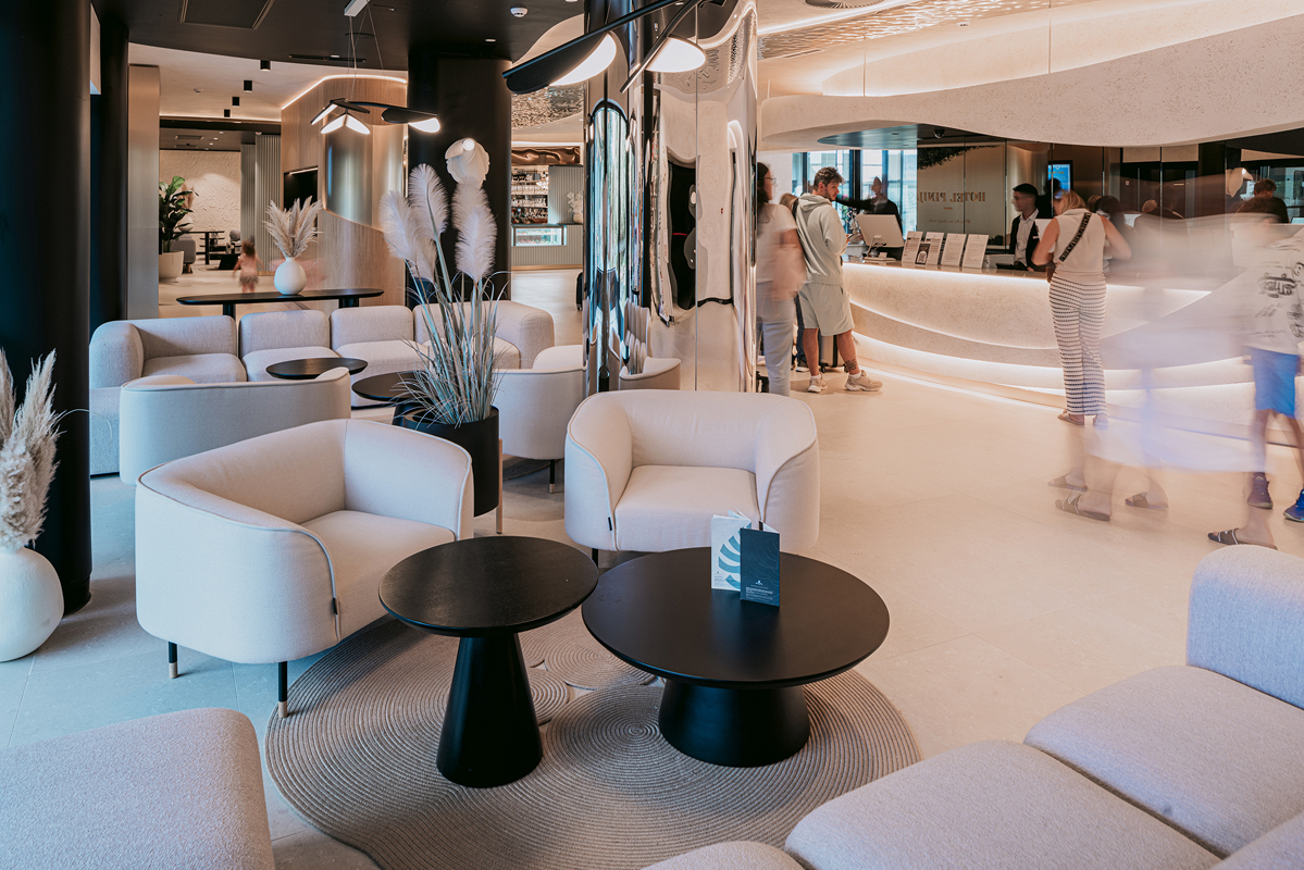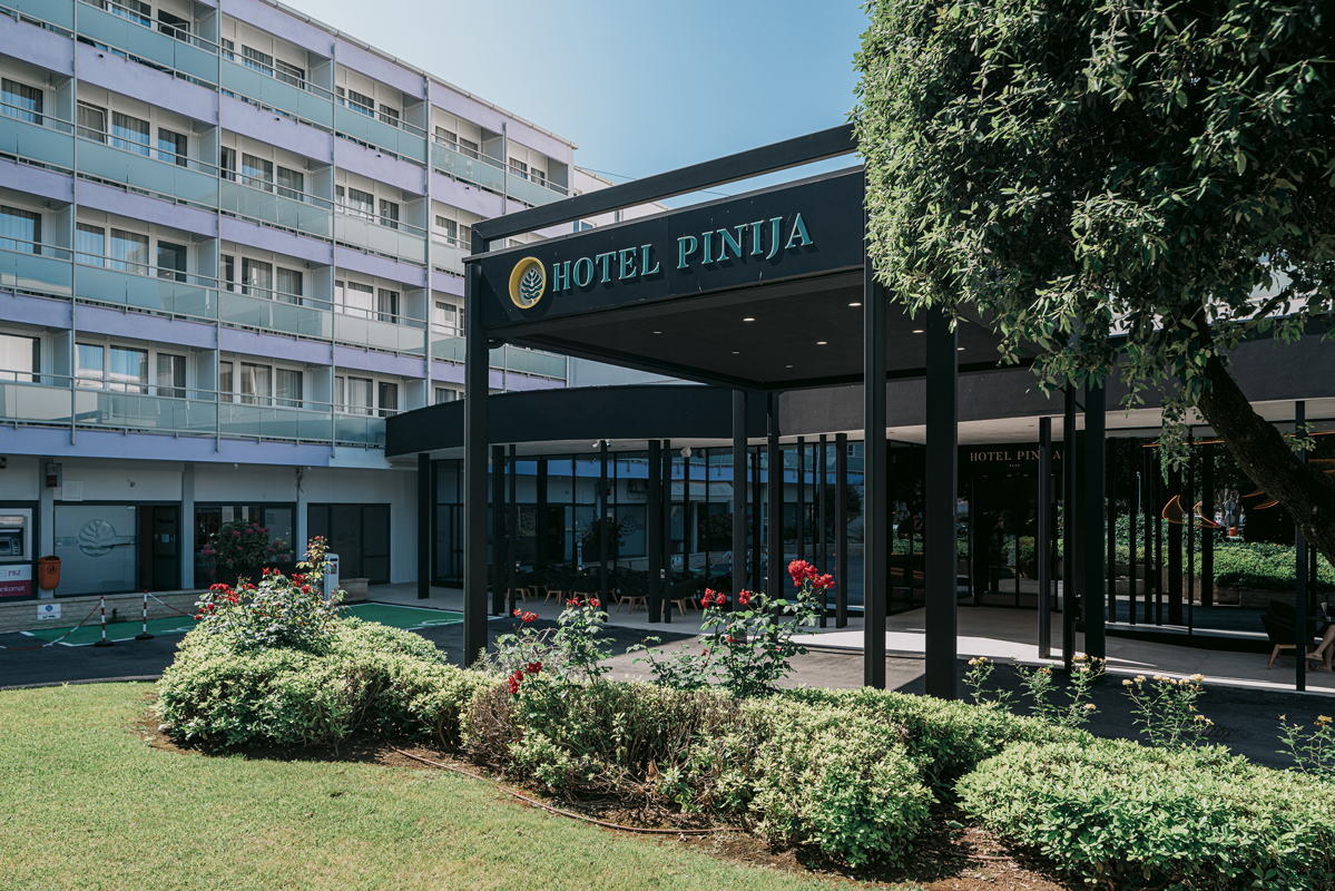 hotel położony na małym półwyspie otoczonym sosnami