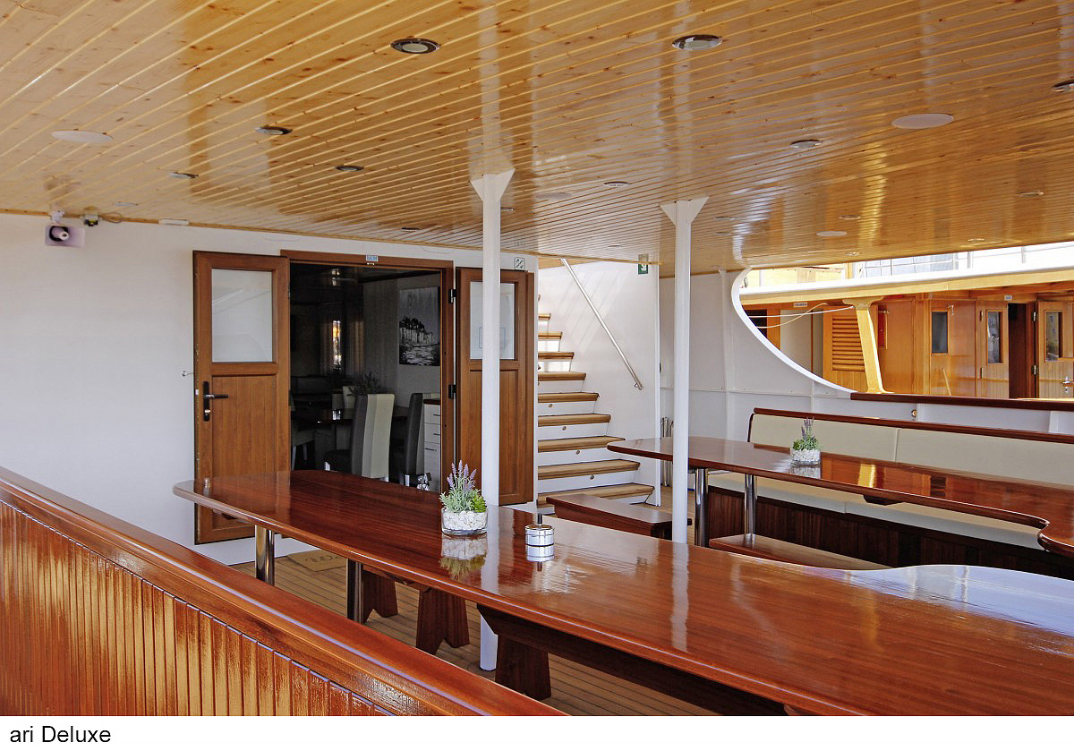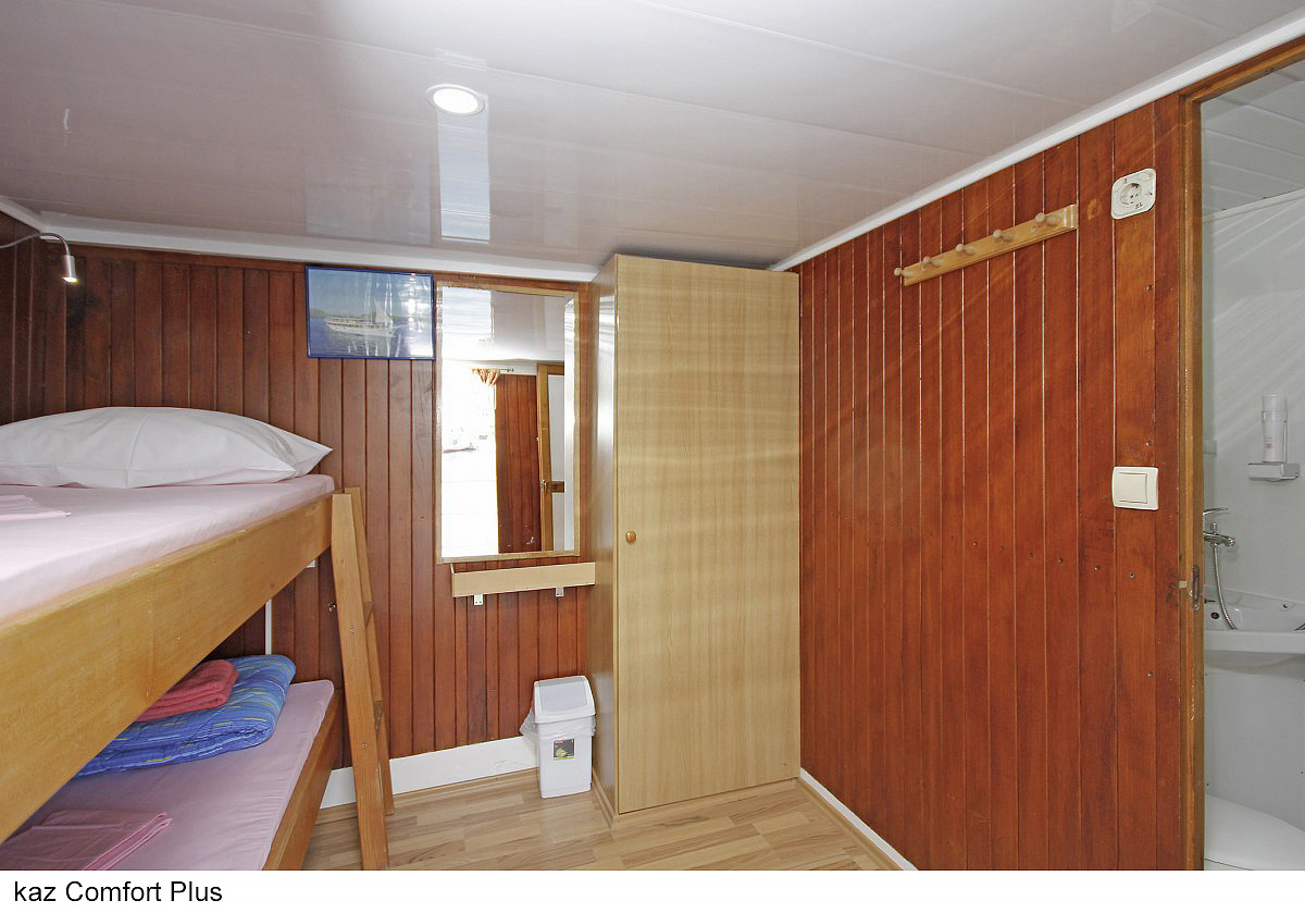 Łodzie kategorii Comfort plus / żaglówki motorowe z drewnianymi lub stalowymi kadłubami, łodzie kategorii Deluxe / luksusowe jachty motorowe ze stalowymi kadłubami, zadaszonym salonem na górnym pokładzie i platformą kąpielową na rufie. Rezerwacji kabiny na pokładzie można dokonać za dodatkową opłatą i wyłącznie po wcześniejszym zgłoszeniu. W kategorii Comfort plus woda z prysznica spływa do odpływu podłogowego, nie jest to kabina prysznicowa i nie jest oddzielona zasłoną.