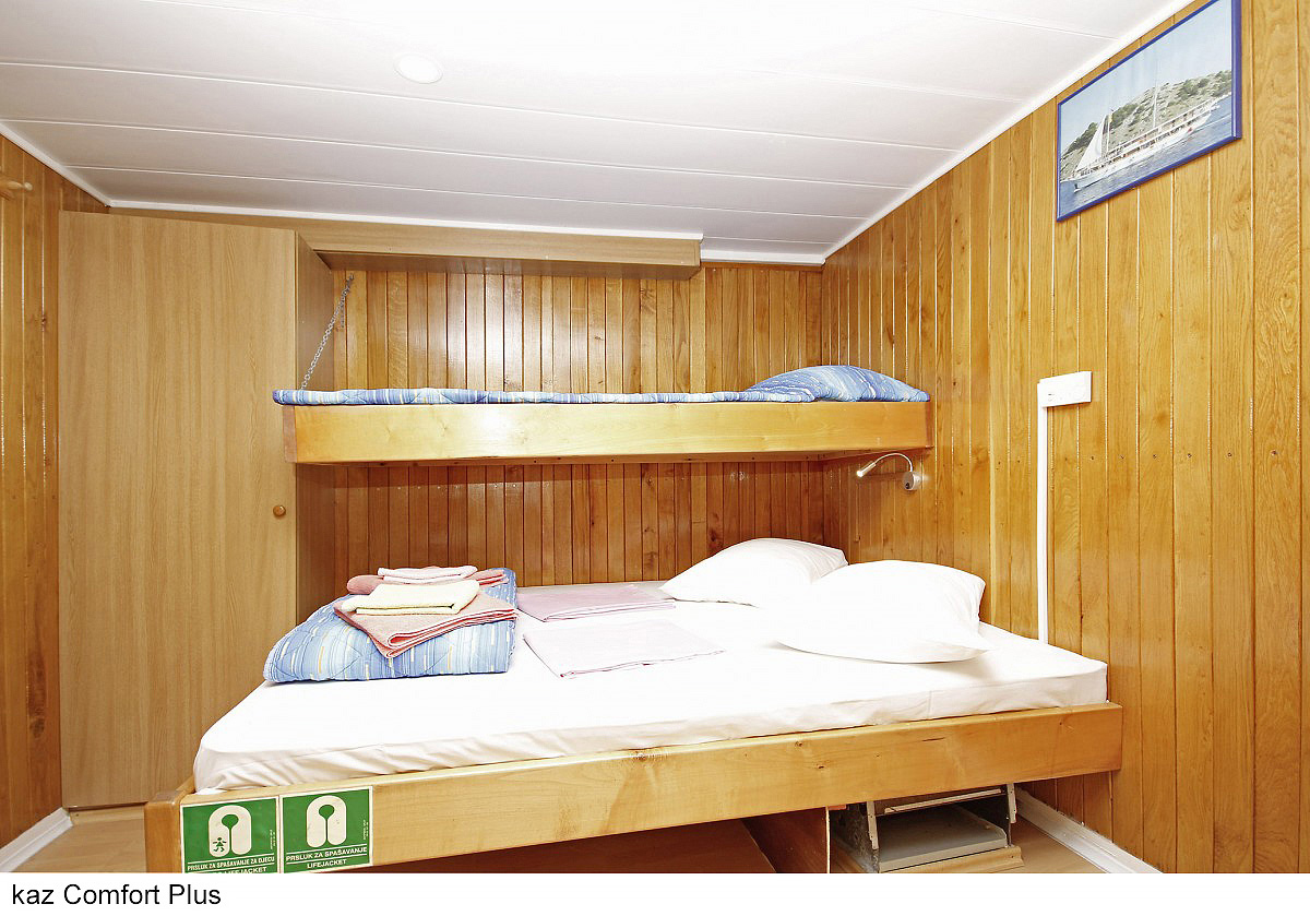 Comfort plus 2 - kabina z łóżkami piętrowymi lub łóżkiem francuskim, prywatna łazienka z prysznicem i toaletą, opis dotyczy również Comfort plus 1