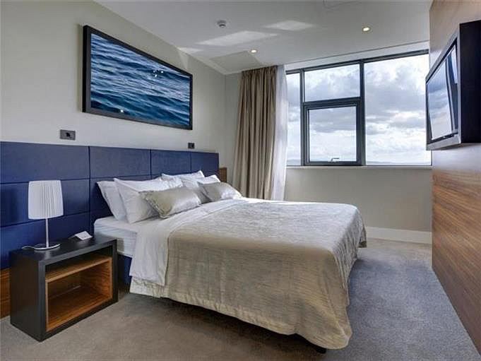 Deluxe 2/3 M - pokój z łóżkiem małżeńskim i dostawką w postaci rozkładanej sofy, łazienka z prysznicem lub wanną, widok na morze