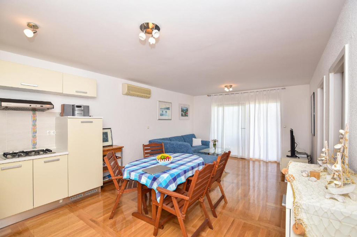 Tučepi, centrum – 700 m, plaża / kamienista z pozwolnym zejściem do morza - 50 m, plaża Slatina – 200 m, lotnisko Split – 80 km