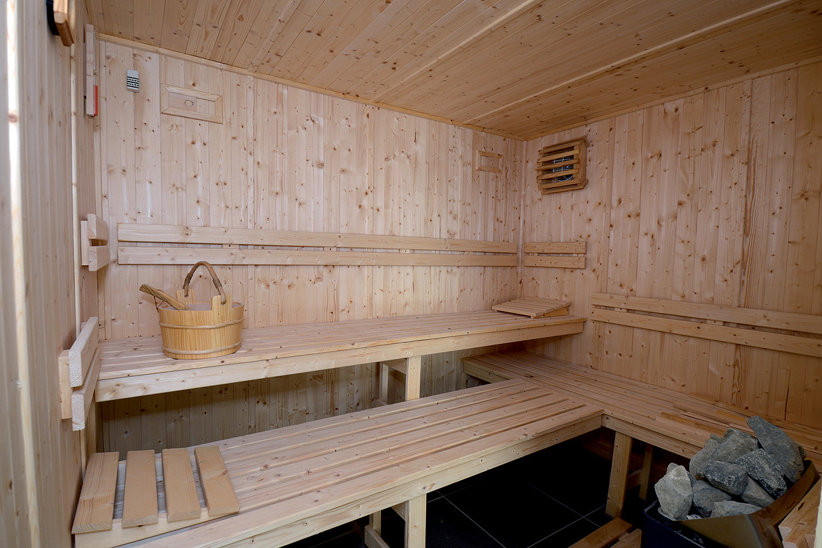 odkryty basen 24 x 8 m z basenem dla dzieci i leżakami, mała siłownia, sauna* sauna parowa*