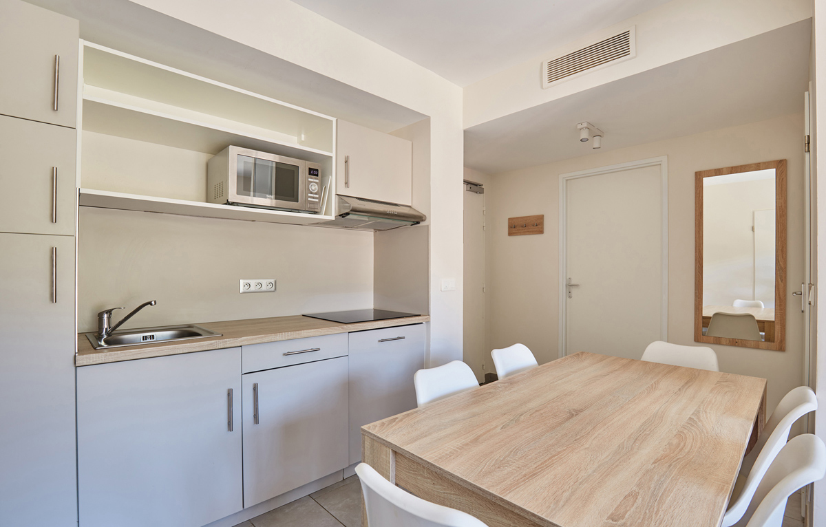 28 m² - 1 sypialnia z łóżkiem małżeńskim lub osobnymi łóżkami, salon z aneksem kuchennym i rozkładaną sofą dla 2 osób (możliwość rozłożenia do 2 osób), łazienka z prysznicem, taras lub balkon