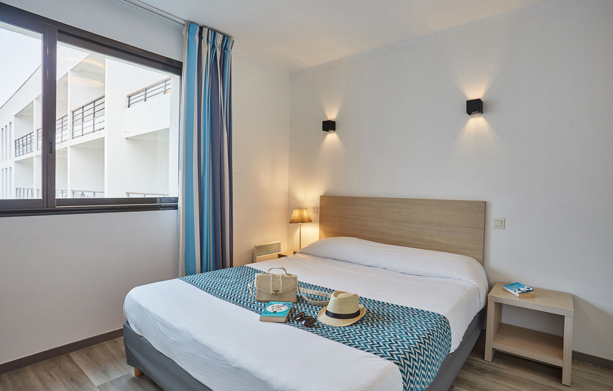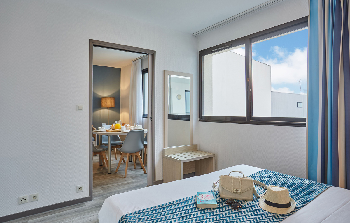 56 m² - 1 sypialnia z łóżkiem małżeńskim, kabina z łózkiem piętrowym, pokój dzienny z aneksem kuchennym i rozkładana kanapą dla 2 osób (możłiwy typ "szuflada"), łazienka z prysznicem lub wanną, balkon lub taras, niektóe apartamenty mogą byc dwupoziomowe