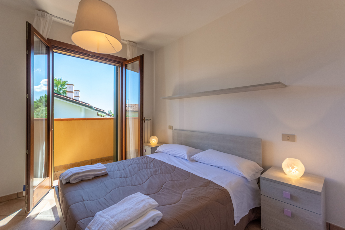 80 m² – połowa parterowej willi w Valle da Pesca, w pobliżu ośrodka jeździeckiego; na parterze 1 sypialnia z łóżkiem małżeńskim, salon z aneksem kuchennym, łazienka z prysznicem, weranda z kominkiem zewnętrznym i grillem, ogród; na piętrze 1 sypialnia z 2 łóżkami pojedynczymi, łazienka z prysznicem; 2 miejsca parkingowe przy domu
