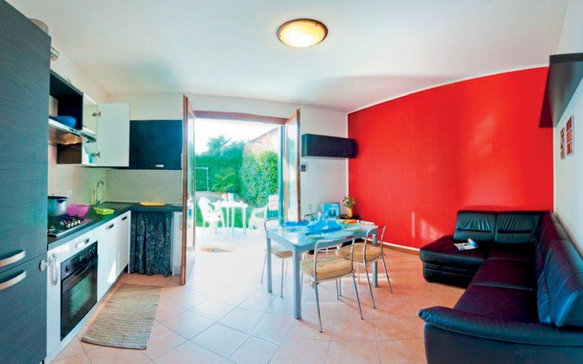 49 m² - 1 sypialnia z łóżkiem małżeńskim, 1 sypialnia z łóżkiem piętrowym dla 2 osób, pokój dzienny z aneksem kuchennym i rozkładaną kanapą dla 2 osób, łazienka z prysznicem, taras