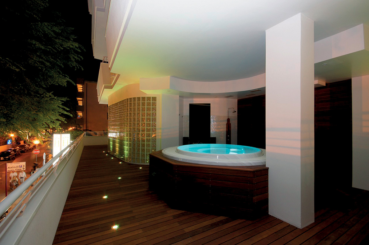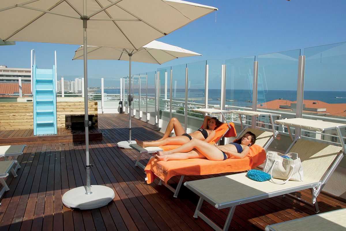 mały basen na dachu (czynny od około końca maja do połowy września) z parasolami* i leżakami*, centrum wellness* (jacuzzi, sauna fińska, prysznice wrażeń, łaźnia parowa, strefa relaksu), wypożyczalnia rowerów, serwis plażowy (w cenie 1 parasol i 2 leżaki na pokój, na plaży 500 m od hotelu)