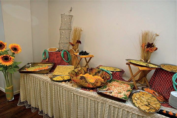 bufet, nieograniczona ilość wody z kranu i wina; inne napoje za opłatą