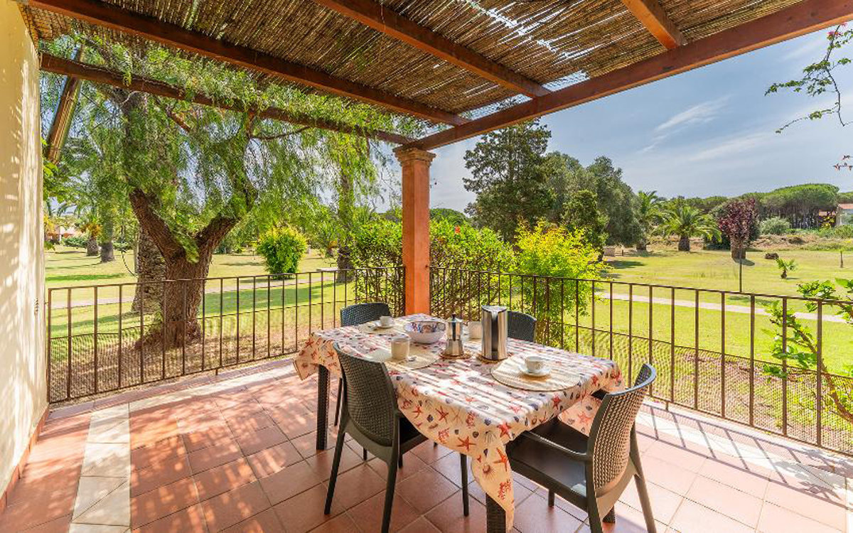 kompleks mieszkalny z basenem położony w spokojnej okolicy, w dużym ogrodzie, w południowej części wyspy; starożytne miasto Nora znajduje się 5,2 km od rezydencji