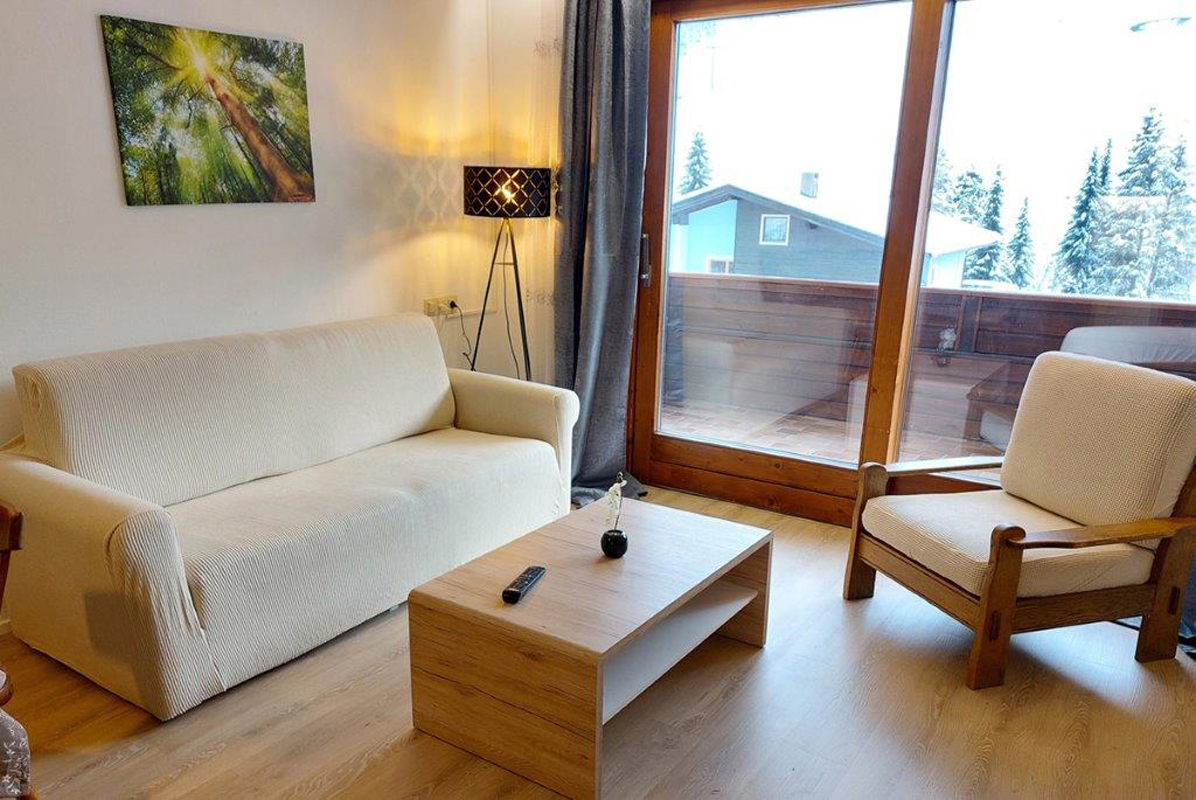 31 m² - salon z aneksem kuchennym, łóżkiem małżeńskim i rozkładaną sofą dla 1 osoby, łazienka, korytarz, balkon