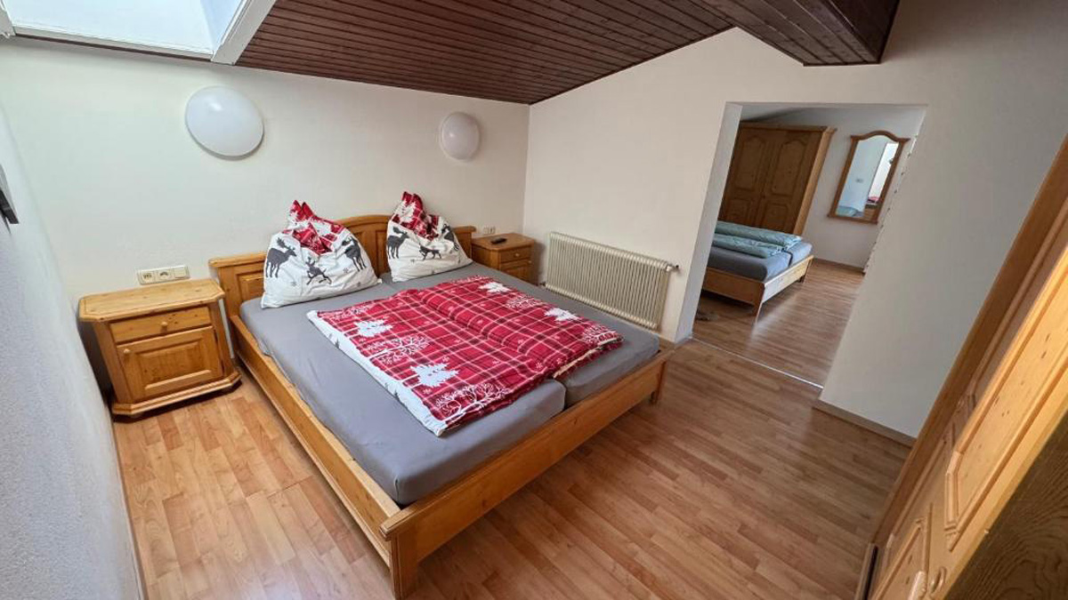 28 m² - 2 częściowo oddzielne sypialnie, każda z łóżkiem małżeńskim lub 2 pojedynczymi, łazienka, rzadko balkon z widokiem na góry
