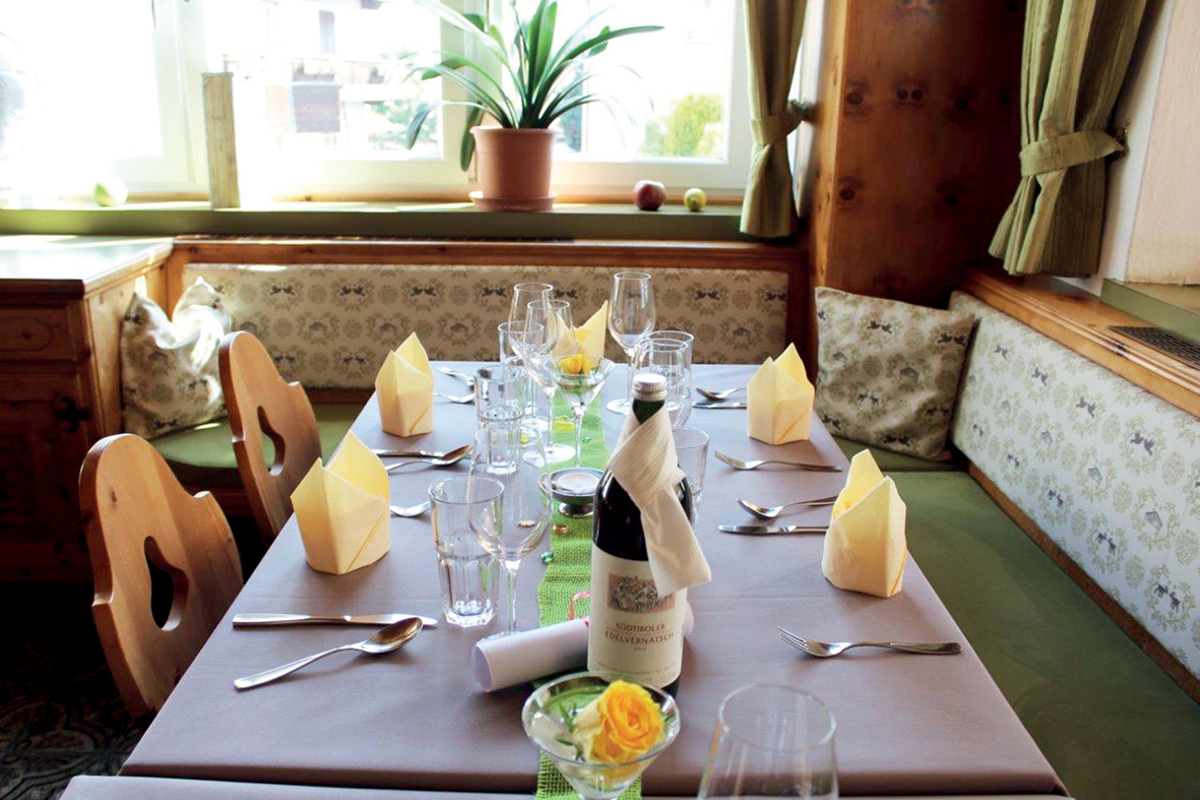 wyposażenie i usługi - recepcja / małe lobby z TV, stołówka śniadaniowa, restauracja à la carte / pizzeria "Ticino", stylowa restauracja "Zirmstübe", wi-fi w większości wspólnych pomieszczeń, toast powitalny, ogród zimowy z miejscami do siedzenia, przechowalnia nart i butów narciarskich, zarezerwowany parking