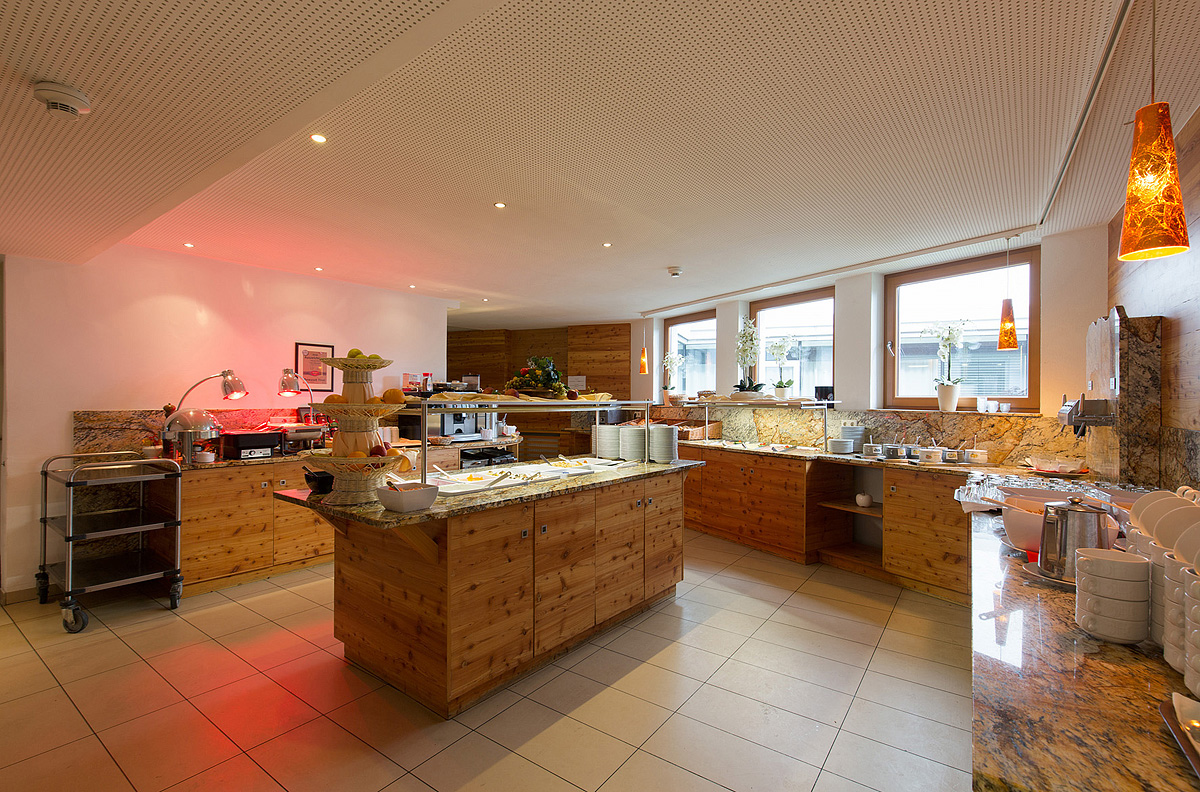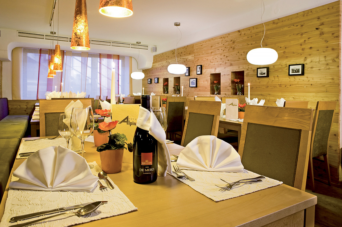 serwowane menu 3-daniowe z możliwością wyboru dania głównego z dodatkiem, przystawką lub zupą, sałatkami i zazwyczaj deserem w formie bufetu, napoje za opłatą; raz w tygodniu tematyczny bufet z tyrolską farmą