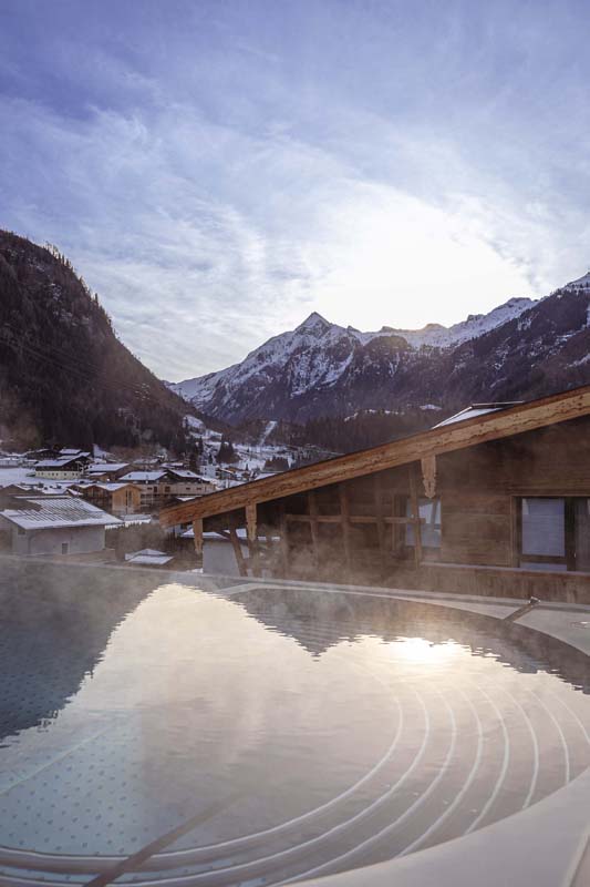basen na dachu hotelu „Infinity pool”#, sauna fińska#, biosauna#, kabina na podczerwień#, 2x kącik relaksacyjny#, taras z widokiem na Kitzsteinhorn#, siłownia#; usługi oznaczone # są dostępne również dla gości apartamentów; wstęp dozwolony od 18. roku życia