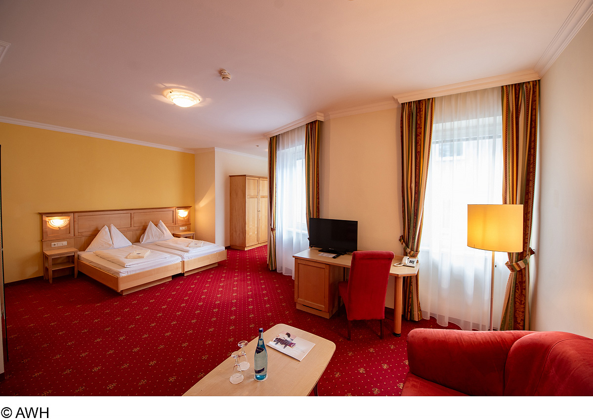 22 m² - pokój z łóżkiem małżeńskim i ewentualnie pojedyńczym łózkim lub dostawką dla 1 osoby, łazienka; infant ponad max. obłożenie nie jest dozwolony