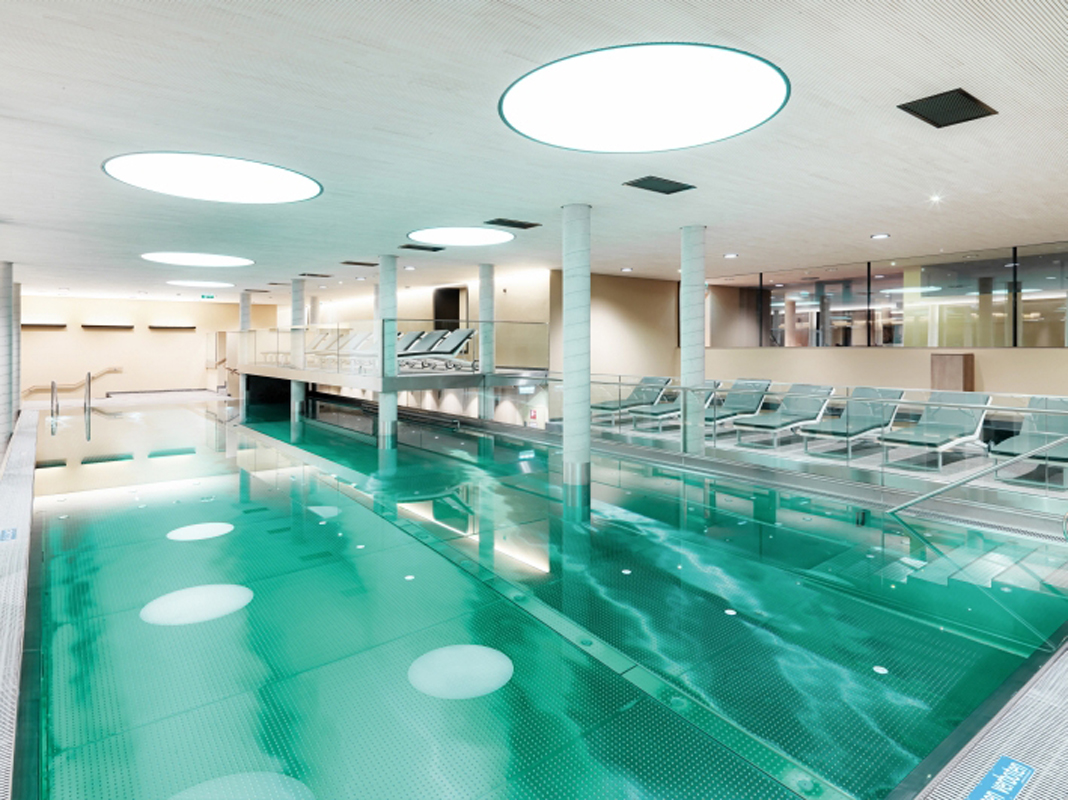 strefa wellness o powierzchni 3000 m² – basen kryty i odkryty z podgrzewaną wodą, basen z brodzikiem dla dzieci i zjeżdżalnią, sauna fińska#, biosauna#, łaźnia parowa#, kabina na podczerwień#, prysznic wielofunkcyjny#, solarium poziome#*, kącik relaksu# z leżakami, masaże#*, zabiegi kosmetyczne#*, siłownia#; z usług oznaczonych # mogą korzystać osoby powyżej 16 roku życia