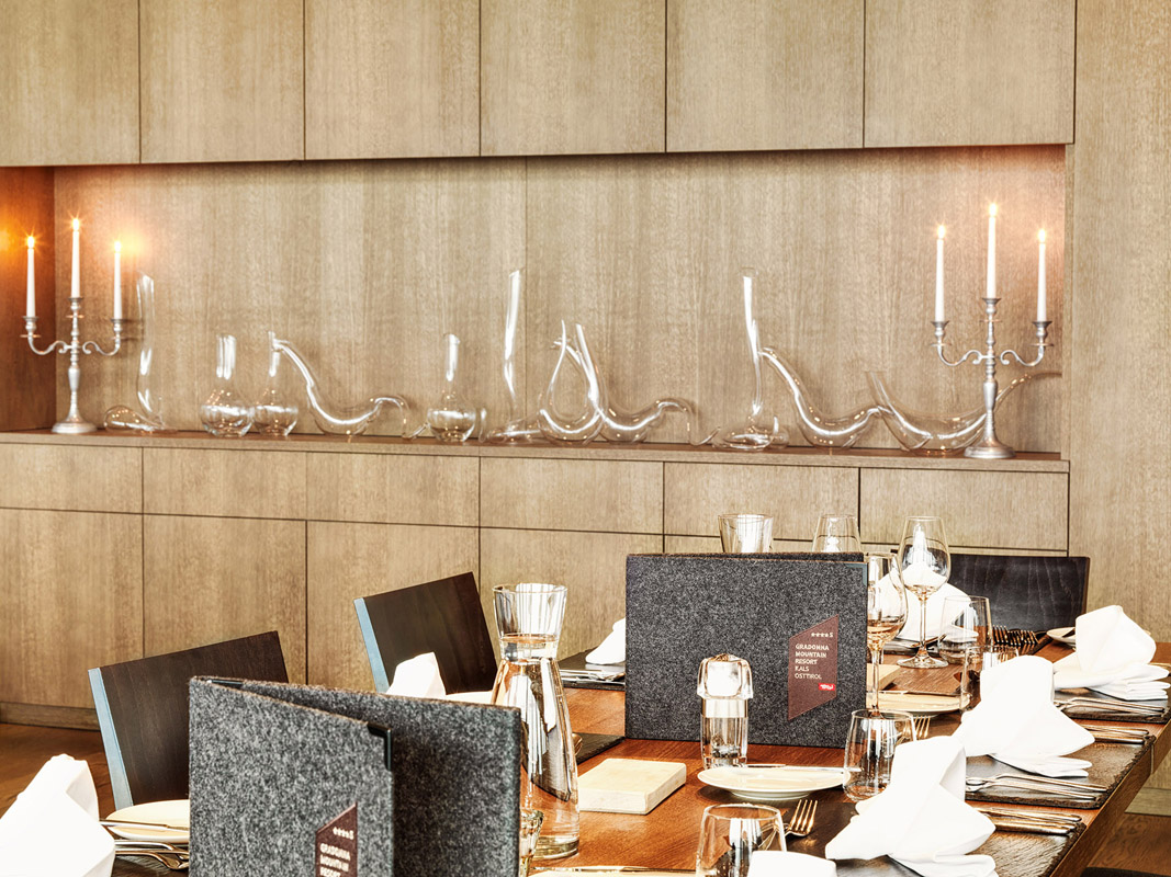 recepcja / duży hol, restauracja zarezerwowana dla gości hotelowych, stylowa restauracja, sala śniadaniowa, bar, duża piwnica z winami, salonik, sala konferencyjna, miniklub (dla dzieci od 3 do 10 lat; codziennie od 9:00 do 21:00, z wyjątkiem sobót), drink powitalny, Wi-Fi, przechowalnia sprzętu narciarskiego i butów narciarskich, przechowalnia bagażu, winda, zarezerwowane miejsce parkingowe, garaż (1 samochód / pokój), stacja ładowania samochodów elektrycznych*, sklep ze sprzętem sportowym, fryzjer*