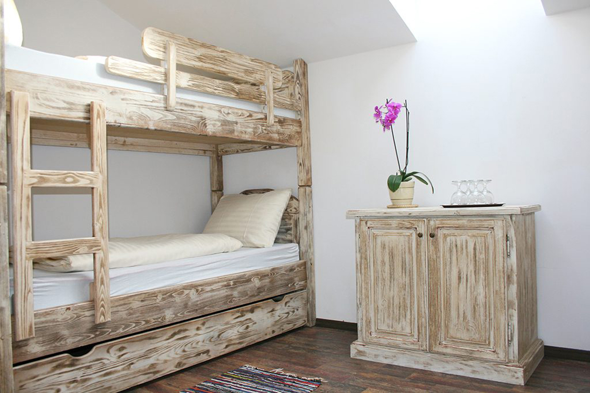16-25 m² - pokój z 3 łóżkami piętrowymi dla maksymalnie 6 osób, łazienka z prysznicem lub wanną, zazwyczaj balkon lub taras