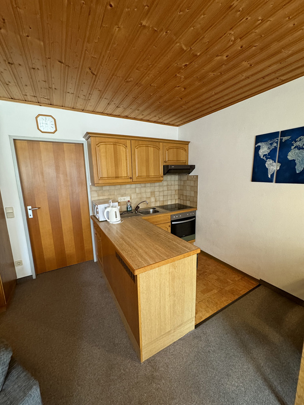 mono 4 Gerlinde - 35 m² - pokój dzienny z aneksem kuchennym i łóżkiem małżeńskim (160 x 200 cm) oraz optycznie oddzielonym łóżkiem piętrowym dla 2 osób, przedpokój, łazienka, 2x balkon (2x z widokiem do doliny); apartament znajduje się na 3. piętrze