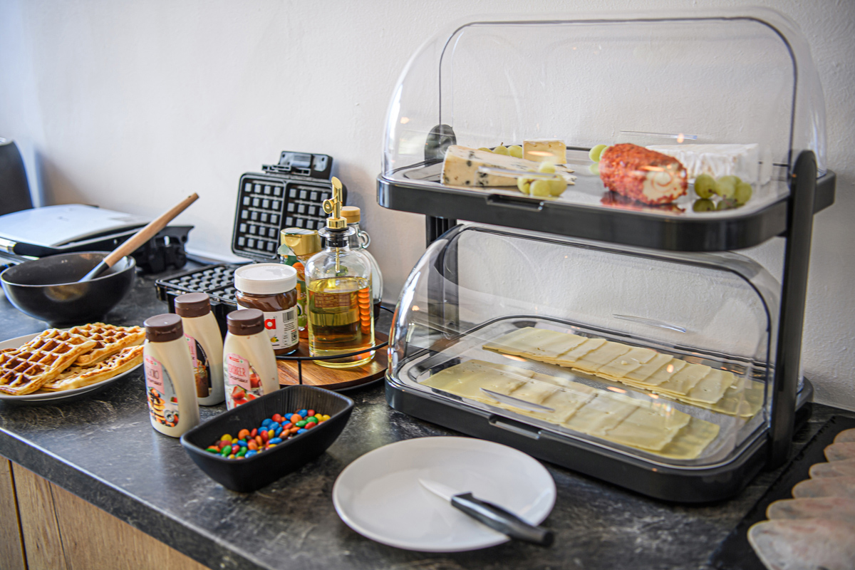 50 do 55 m² - 1 sypialnia z łóżkiem małżeńskim, zazwyczaj o szerokości 140 cm, sypialnia z 2 łóżkami pojedynczymi lub łóżkiem piętrowym, pokój dzienny z aneksem kuchennym, korytarz, łazienka z prysznicem lub wanną, balkon lub taras; infant poza maksymalnym obłożeniem pokoju nie jest pozwolony