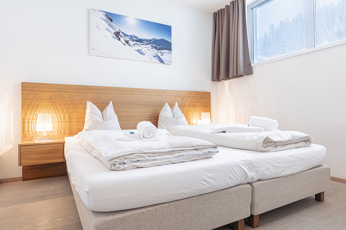 63 do 68 m² - 2 sypialnie z łóżkami małżeńskimi, zazwyczaj z osobnymi łóżkami, salon z aneksem kuchennym i rozkładaną sofą dla 2 osób, łazienka, osobna toaleta, balkon lub taras