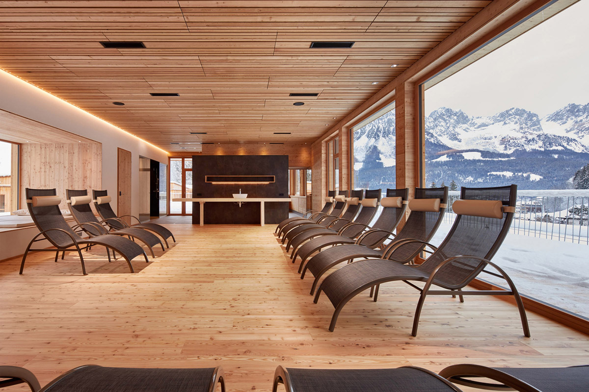 recepcja/hol z kominkiem, restauracja a’la carte, bar, łącze internetowe Wi-Fi, taras słoneczny z miejscami do siedzenia, przechowalnia sprzętu narciarskiego, 6 wind, wydzielony parking, miejsca w garażu, stacja ładowania samochodów elektrycznych*