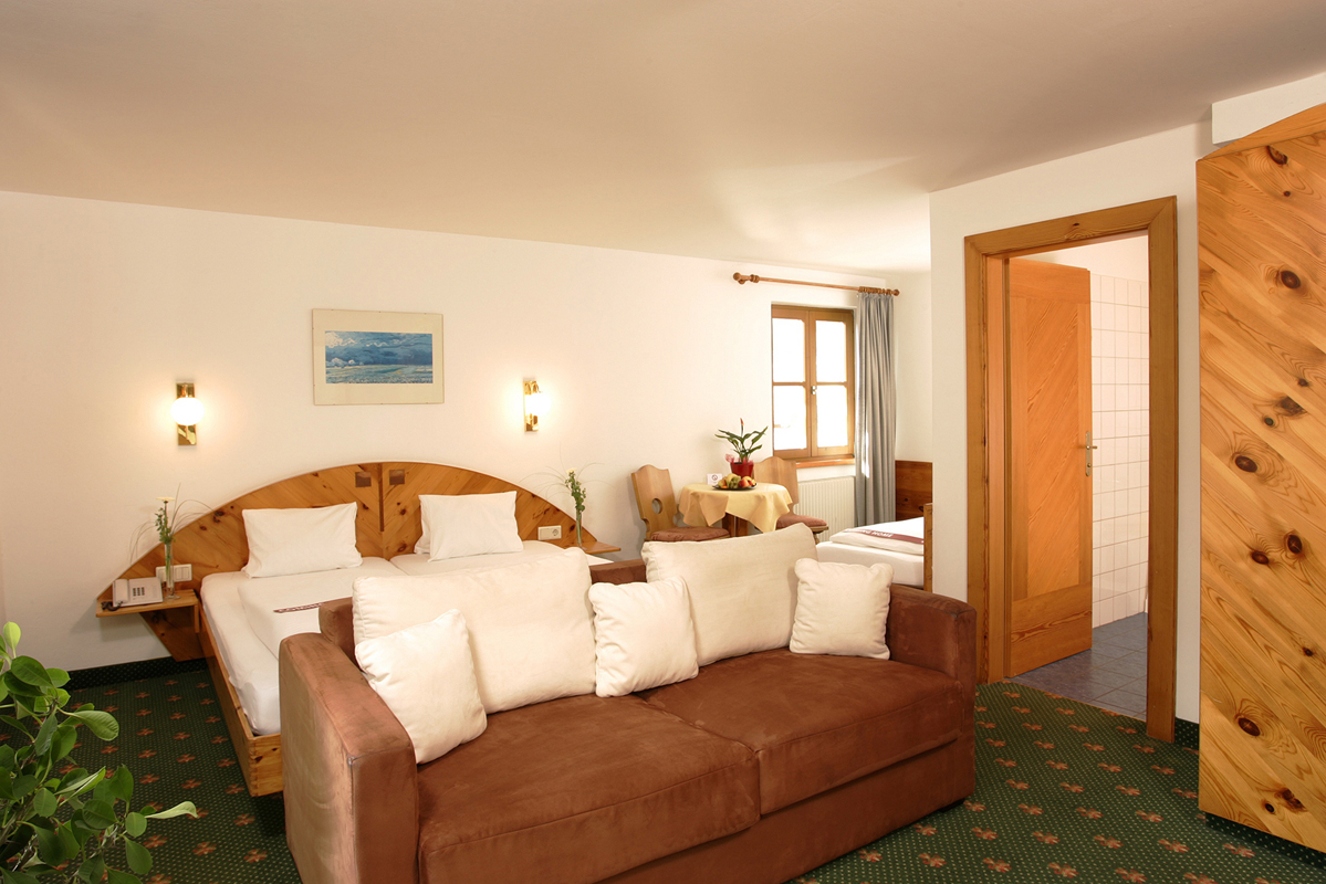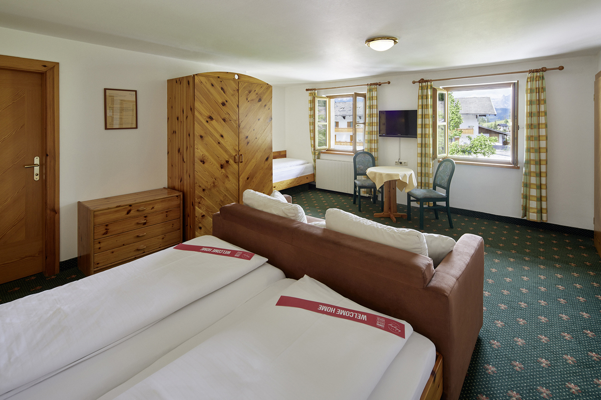 20 do 32 m² - pokój z łóżkiem małżeńskim i ew. 1 łóżkiem pojedynczym lub rozkładaną kanapą łącznie dla 1 lub 2 dzieci do nieukończonych 18 lat, łazienka z prysznicem lub wanną, rzadko balkon; pokoje są zawsze w budynku bocznym