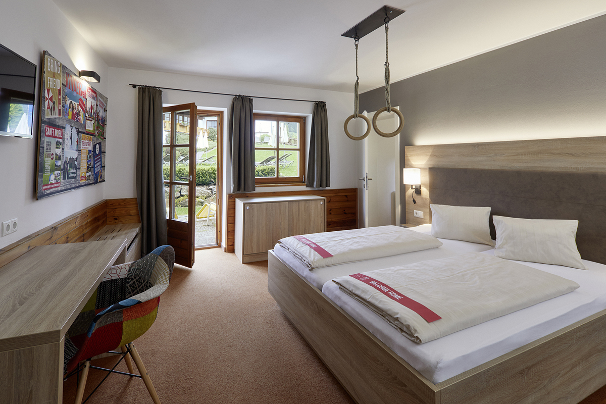 20 m² - pokój z łóżkiem małżeńskim dla 1 osoby dorosłej i 1 dziecka do 18 lat, łazienka z prysznicem lub wanną