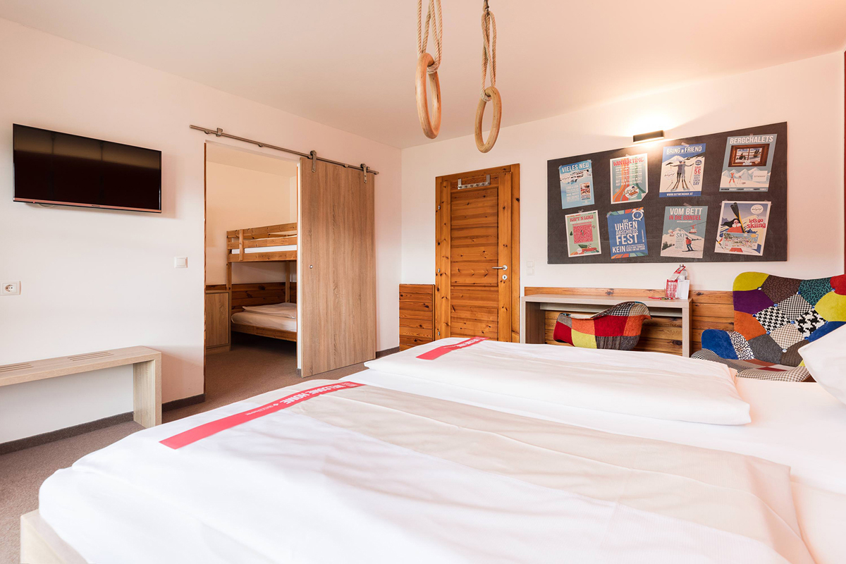 30-40 m² - pokój z łóżkiem małżeńskim, pokój na otwartym planie z łóżkiem piętrowym lub łóżkiem małżeńskim i ewentualnie dostawką dla maksymalnie 3 dzieci do 18 lat, łazienka z prysznicem lub wanną, balkon; pokoje mogą być dwupoziomowe