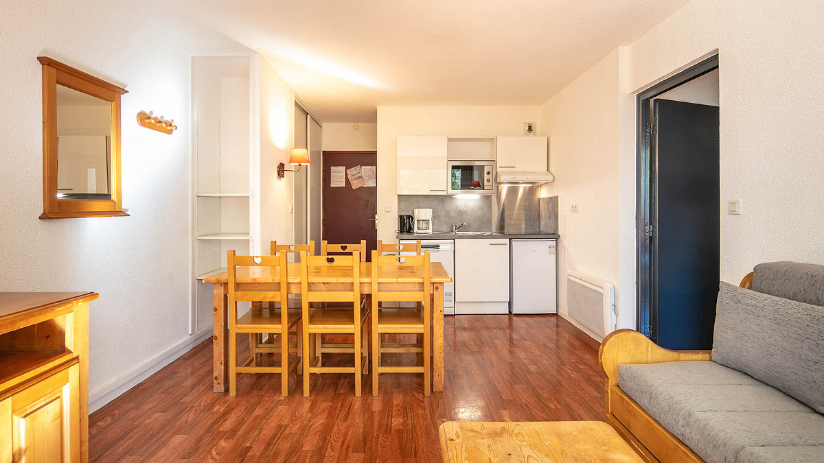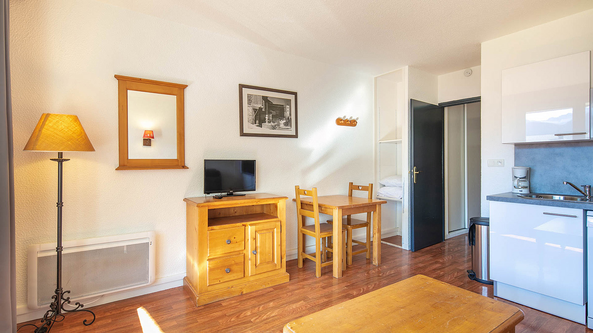 25 m² - pokój dzienny z aneksem kuchennym i rozkładaną kanapą typu "szuflada" dla 2 osób, przedpokój z łóżkiem piętrowym, łazienka z prysznicem lub wanną, połowa z nich ma balkon lub taras