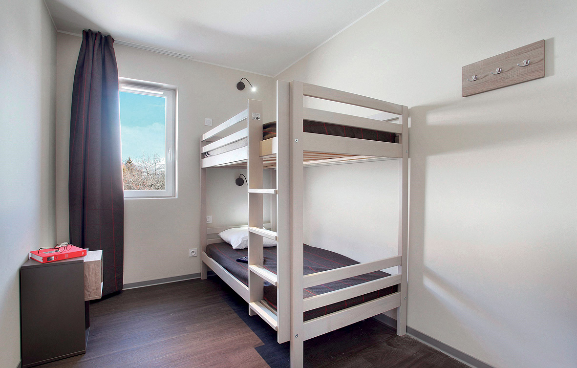 bilo 6 - 39 m² - 1 sypialnia z łóżkiem małżeńskim z możliwością rozdzielenia na łóżka pojedyncze, kabina z łóżkiem piętrowym, pokój dzienny z aneksem kuchennym i rozkładaną kanapą dla 2 osób (możliwy typ "szuflada"), łazienka z prysznicą lub wanną, balkon
