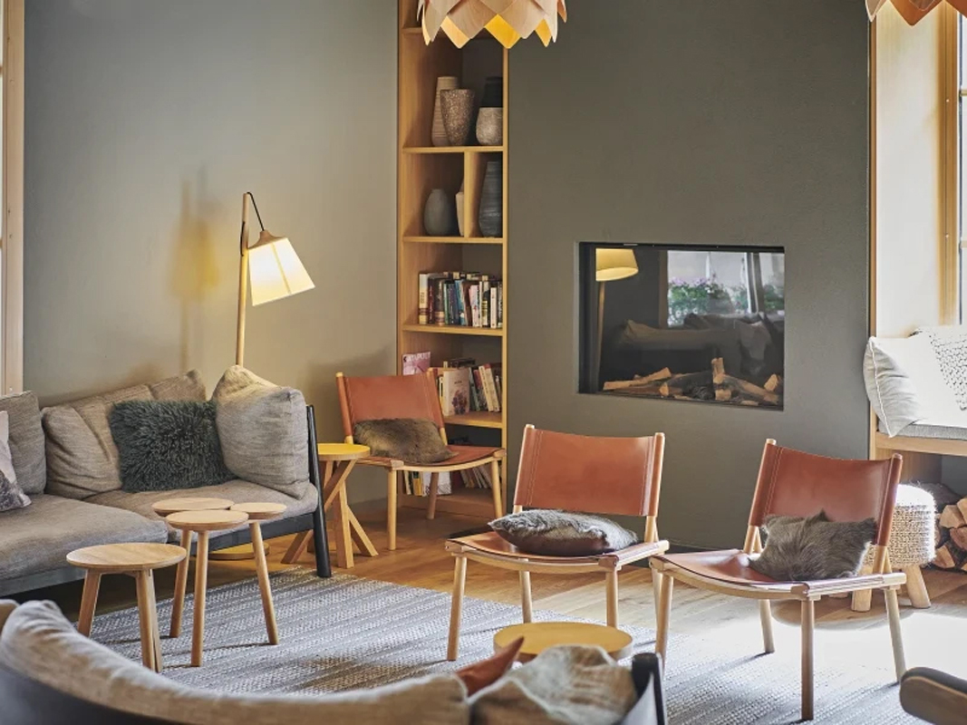 38 m² - sypialnia z 2 pojedynczymi łóżkami, salon z aneksem kuchennym i rozkładaną sofą dla 2 osób, łazienka, balkon; apartament zazwyczaj znajduje się na poddaszu ze skośnym dolnym sufitem