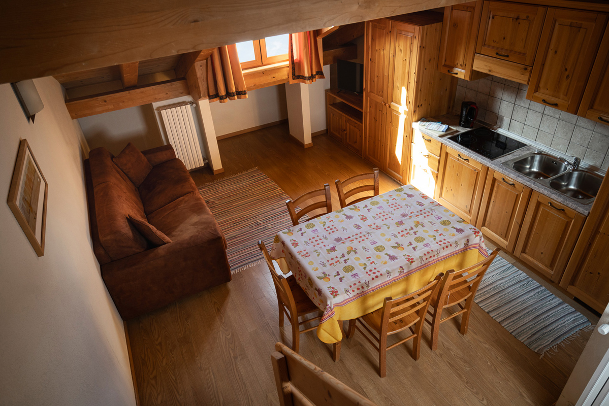 31 m² - salon z aneksem kuchennym, rozkładaną sofą dla 2 osób i łóżkiem piętrowym, łazienka zazwyczaj z prysznicem; apartament znajduje się na poddaszu i nie posiada balkonu