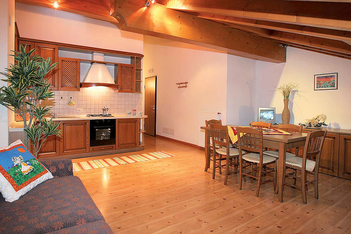 apartament znajduje się w tym samym budynku co Garni Esperia, którego restauracja pełni funkcję recepcji