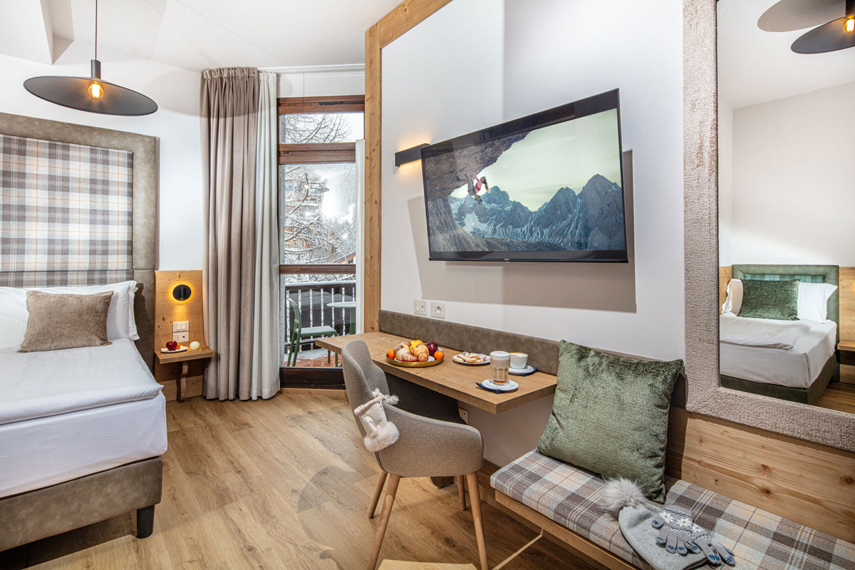22 m² - pokój z 2 łóżkami pojedynczymi lub łóżkiem małżeńskim i ewentualnie 1 łóżkiem pojedynczym, łazienka z prysznicem lub wanną, balkon