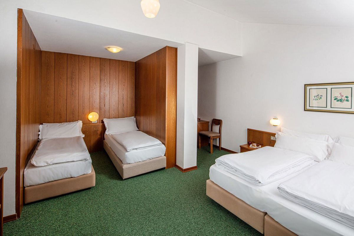 pokój z 2 łóżkami pojedynczymi lub łóżkiem małżeńskim i ewentualnie 1 łóżkiem pojedynczym, łazienka z prysznicem, balkon; pokoje po całkowitym remoncie