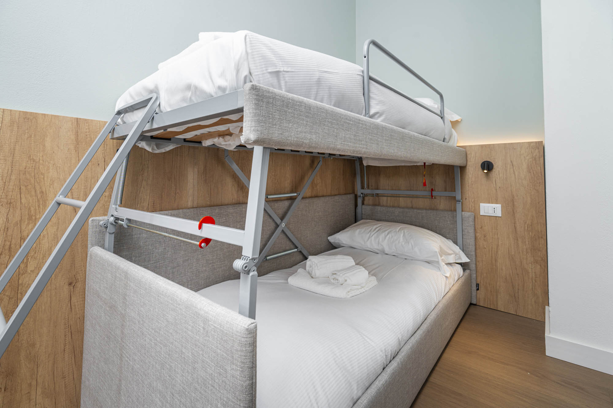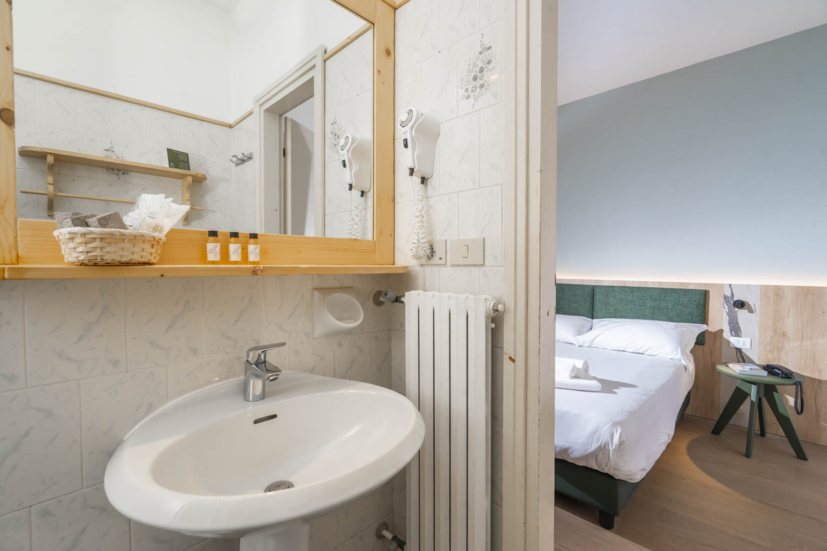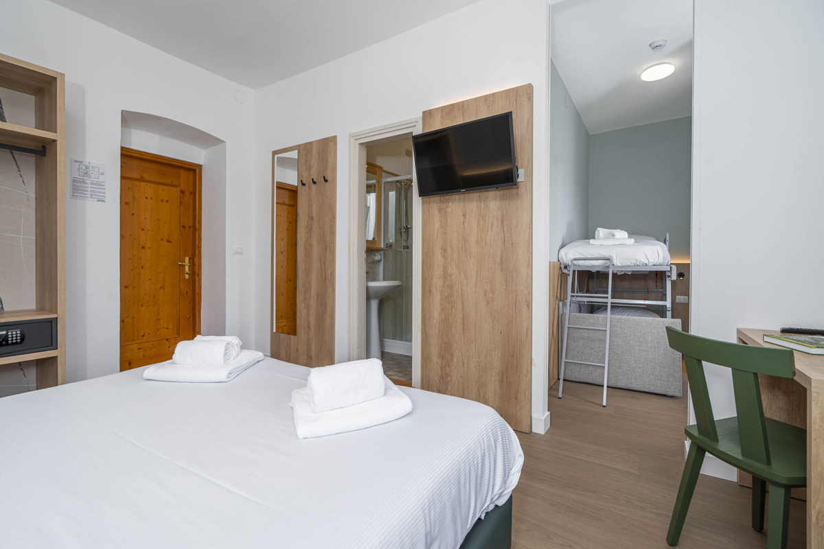 15 - 19 m² - pokój z łóżkiem małżeńskim lub 2 pojedynczymi łóżkami i ewentualnie 1 kolejnym łóżkiem pojedynczym, łazienka; pokoje znajdują się w głównym budynku, rzadko balkon