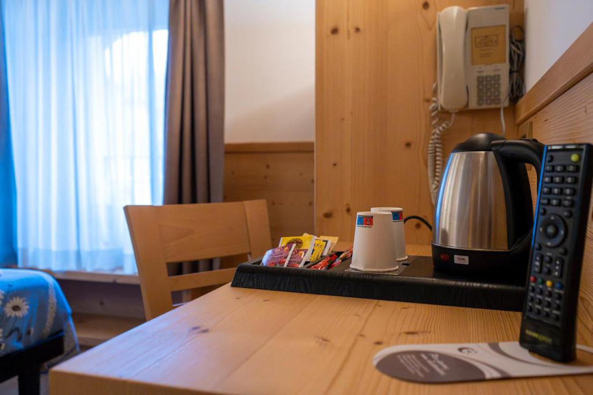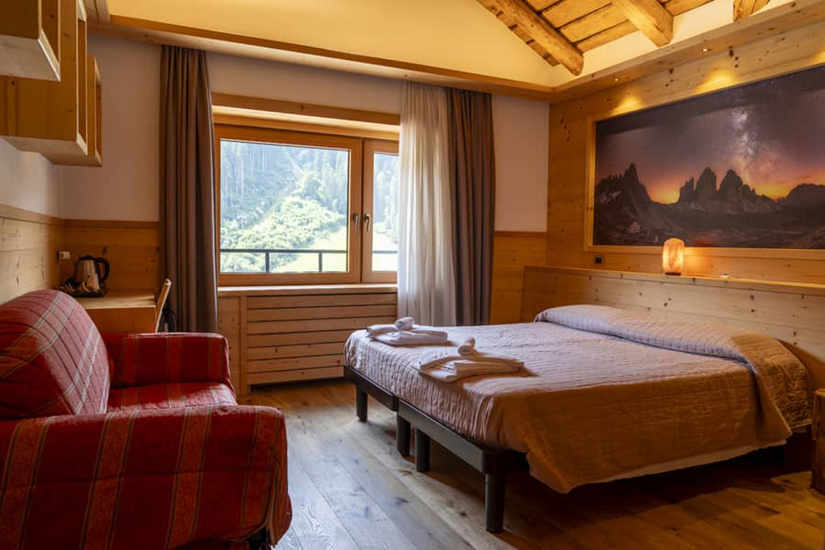 pokój z łóżkiem małżeńskim lub 2 łóżkami pojedynczymi i łóżkiem piętrowym, łazienka z prysznicem, zazwyczaj balkon; maksymalna liczba osób to 2 osoby dorosłe i 2 dzieci poniżej 16 lat